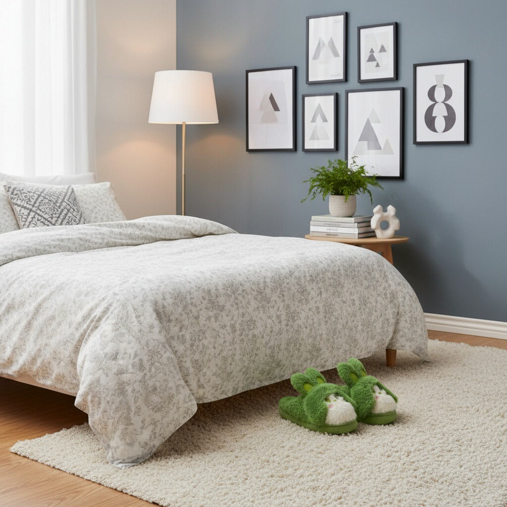 Papuci de casa pufosi si relaxanti, lucrati din materiale moi si calduroase. Sunt alegerea perfecta pentru confort si incalzire.