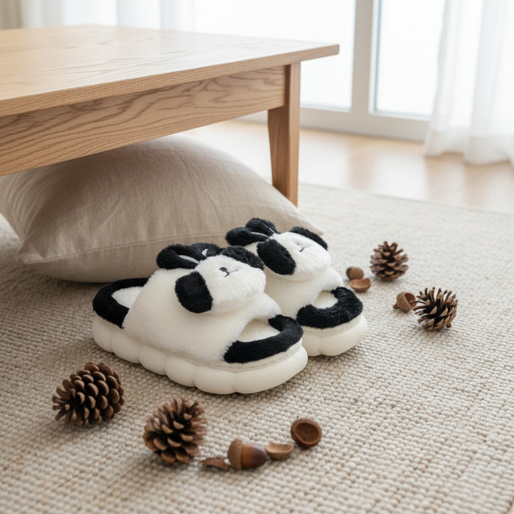 Papuci de casă cu vârf deschis, pufoși și relaxanți, lucrați din materiale moi și călduroase. Sunt alegerea perfectă pentru confort și încălzire. Detalii: • Compoziție: 90% textil, 10% sintetic; • Talpă anti-alunecare, 100% cauciuc; • Înălțime talpă: 3 cm;