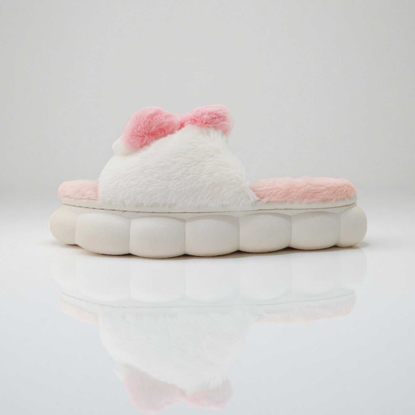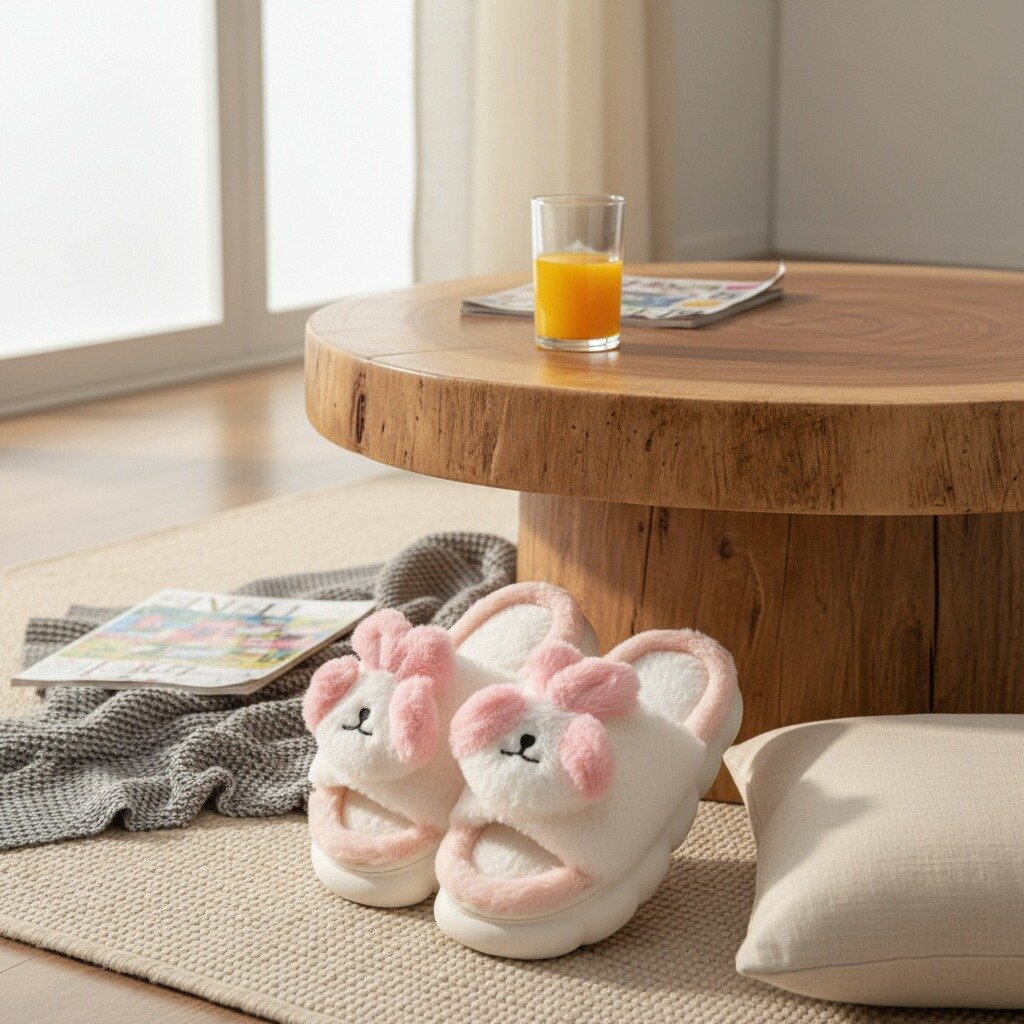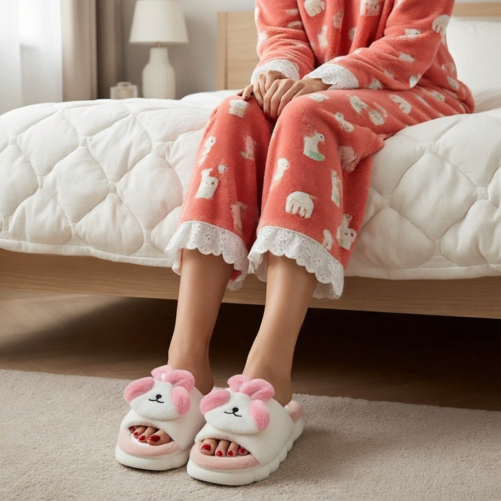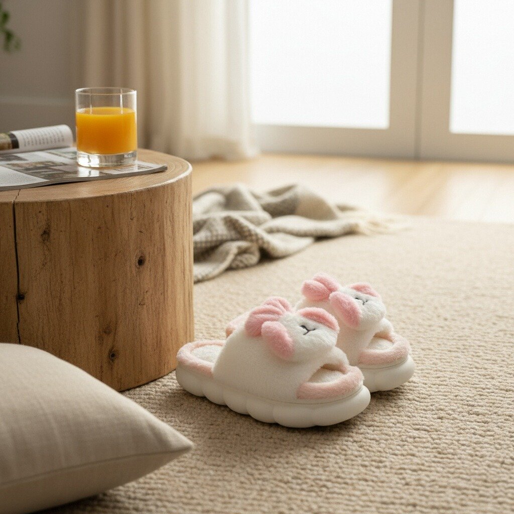 Papuci de casă cu vârf deschis, pufoși și relaxanți, lucrați din materiale moi și călduroase. Sunt alegerea perfectă pentru confort și încălzire. Detalii: • Compoziție: 90% textil, 10% sintetic; • Talpă anti-alunecare, 100% cauciuc; • Înălțime talpă: 3 cm;