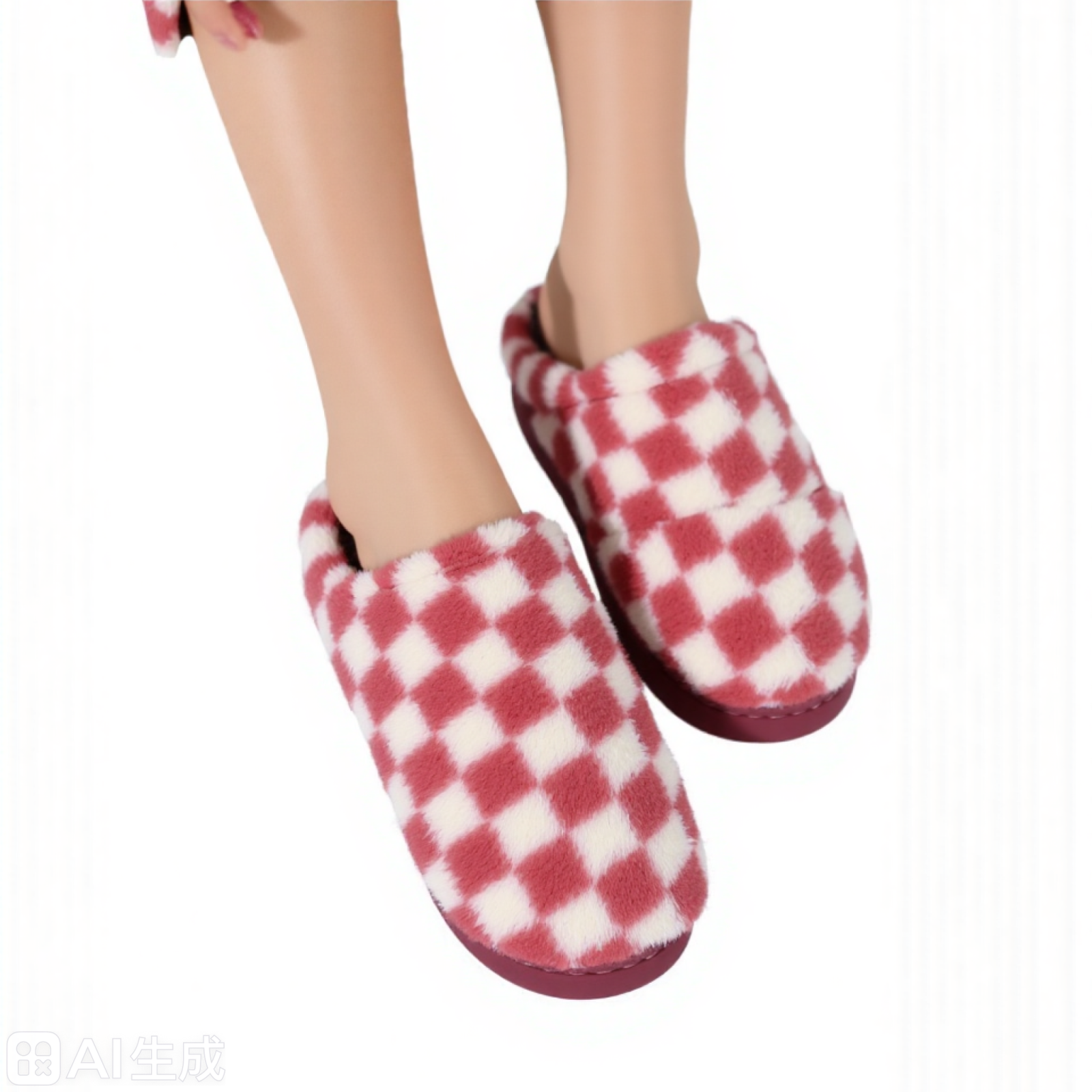 Papuci de casa pufosi, model in carouri L602mov