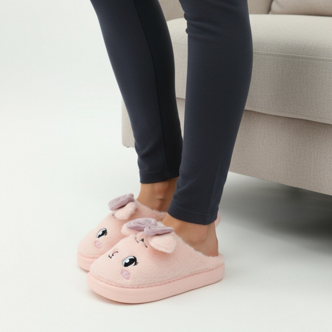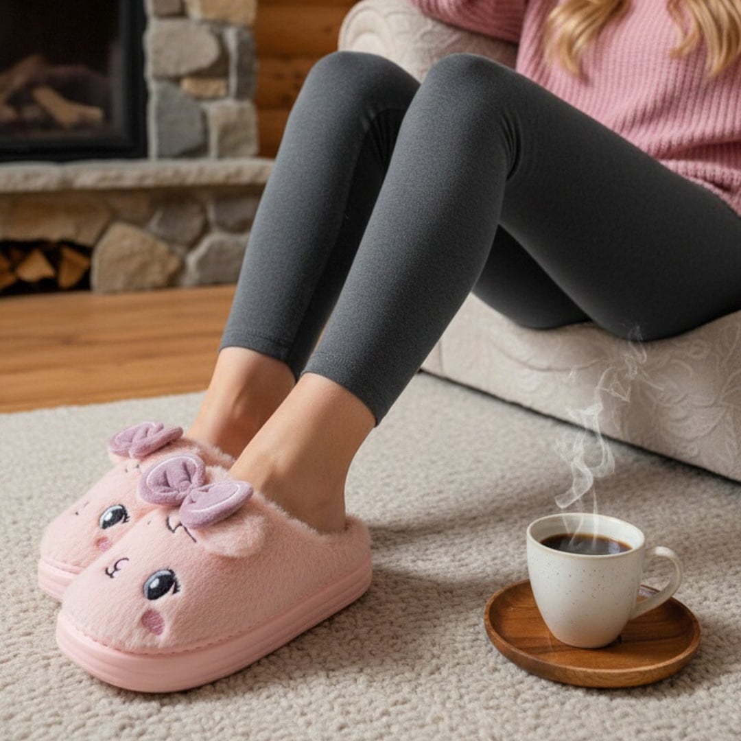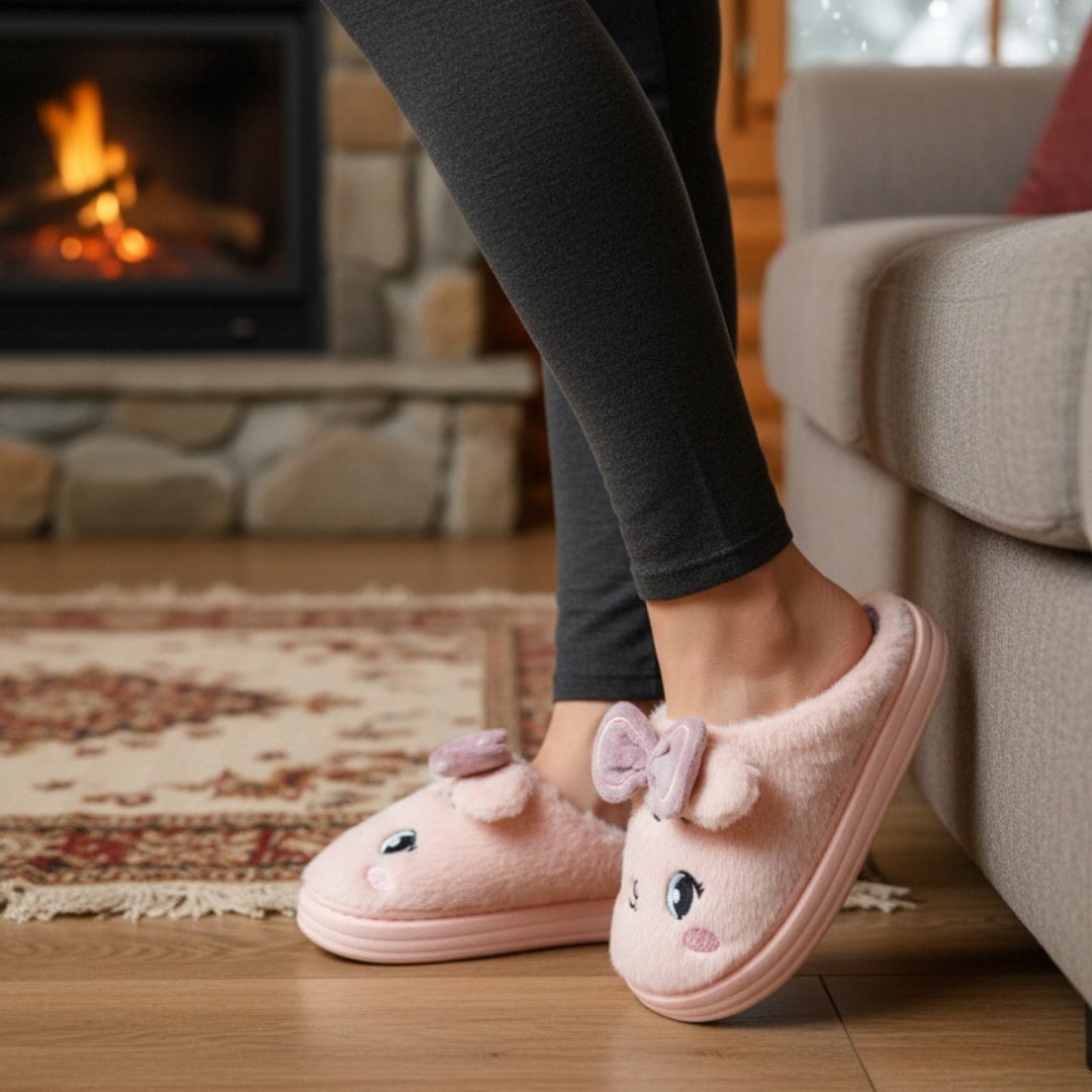 Papuci de casă pufoși și relaxanți, lucrați din materiale moi și călduroase. Sunt alegerea perfectă pentru confort și încălzire.