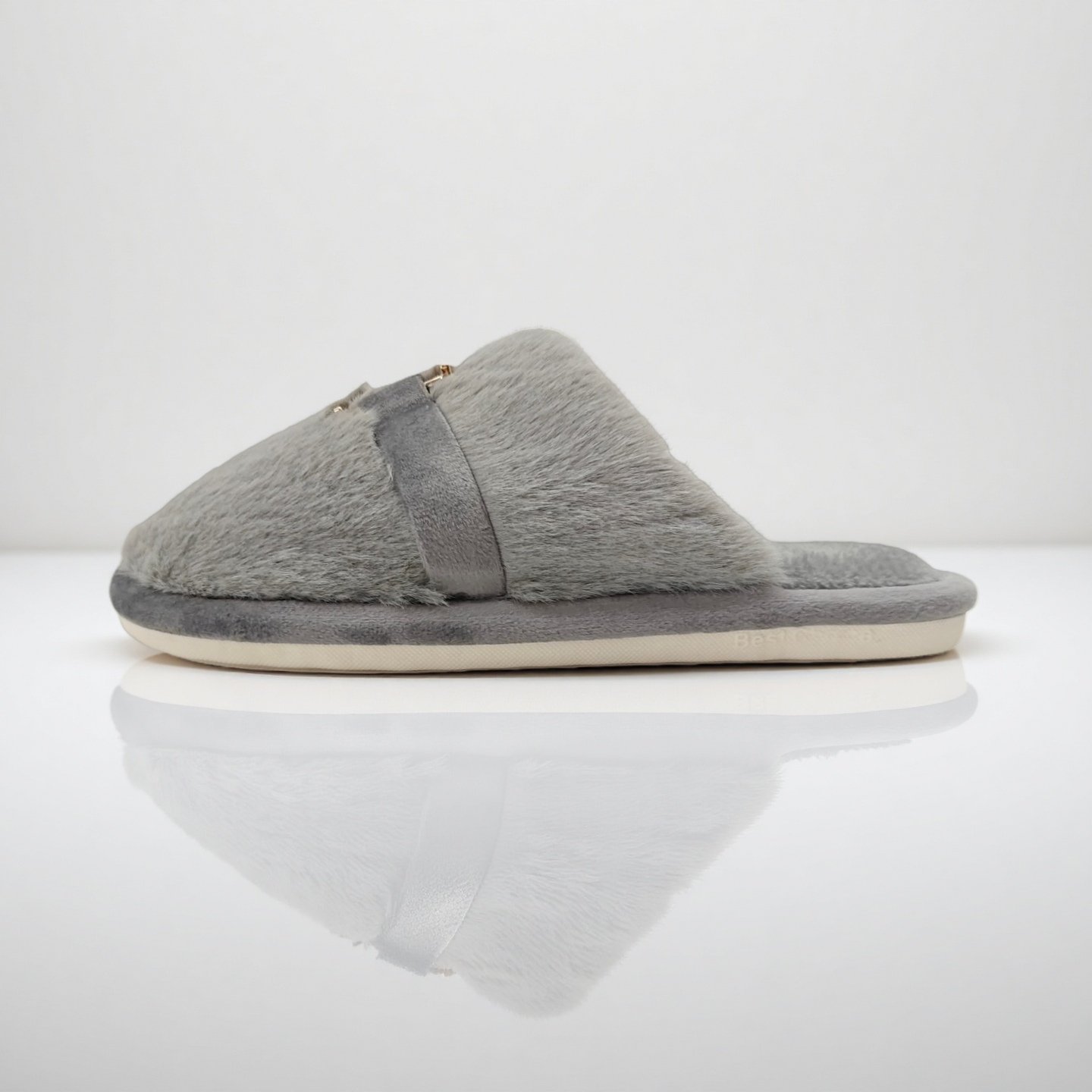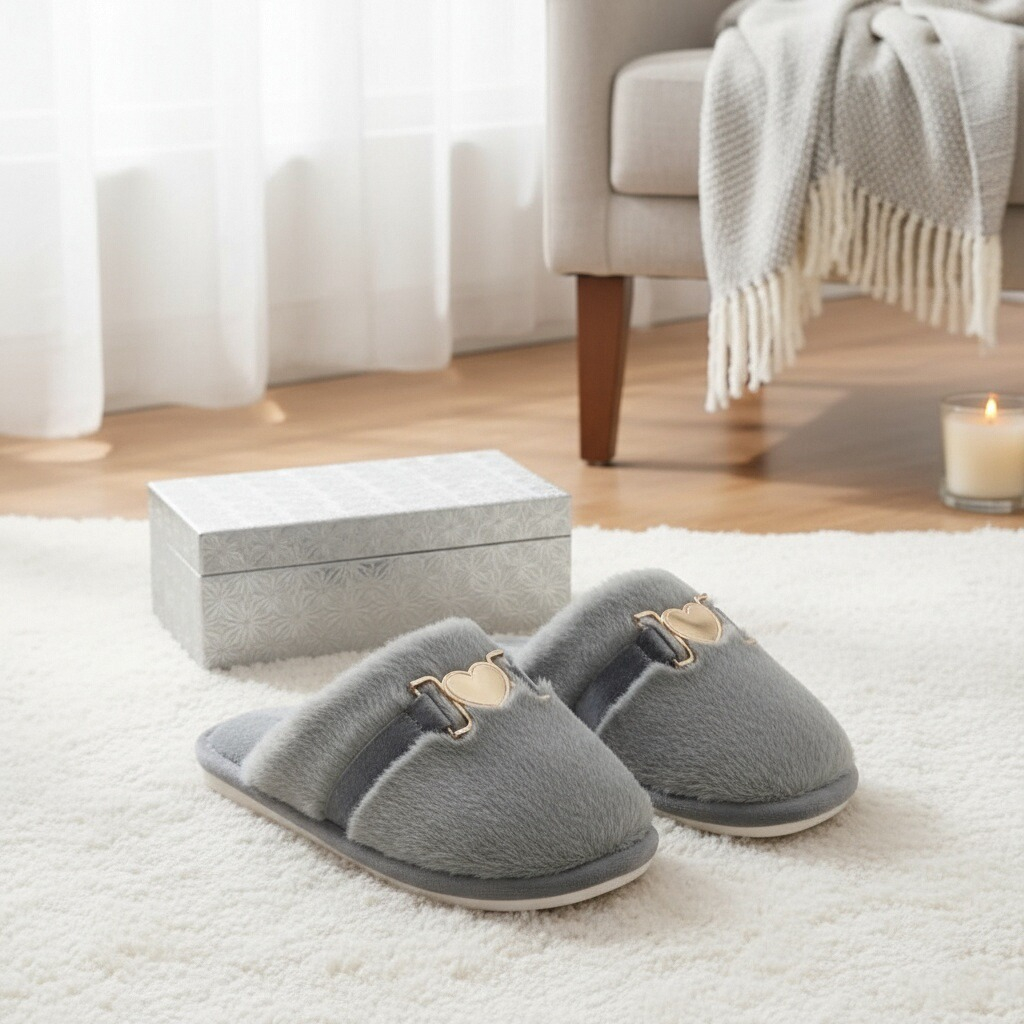 Papuci de casă pufoși și relaxanți, lucrați din materiale moi și călduroase. Sunt alegerea perfectă pentru confort și încălzire.