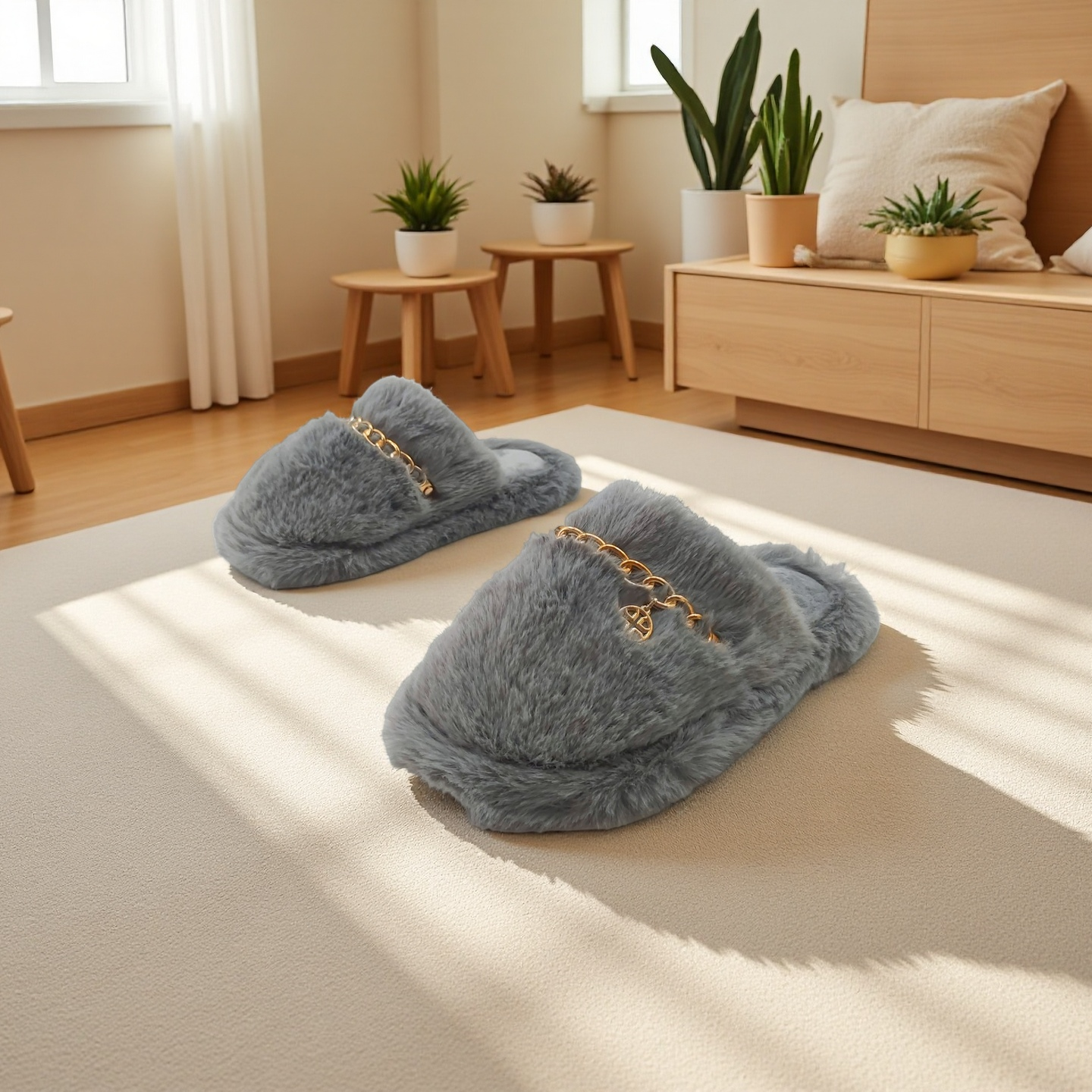 Papucii de casă pufoși sunt alegerea perfectă pentru confort și încălzire.