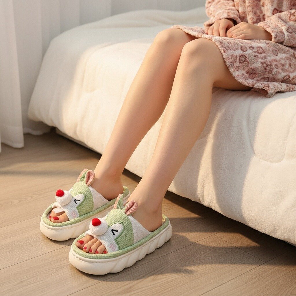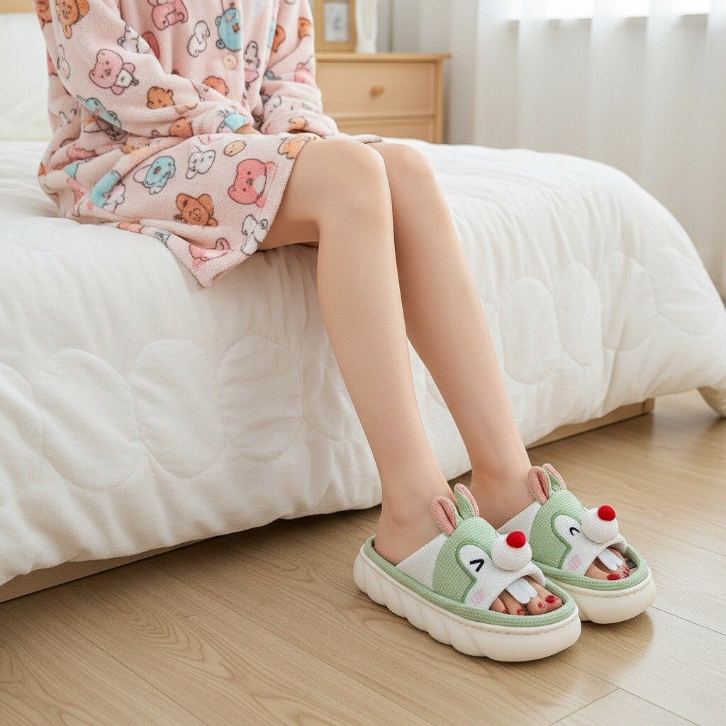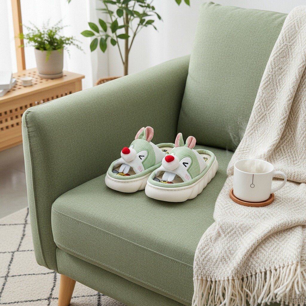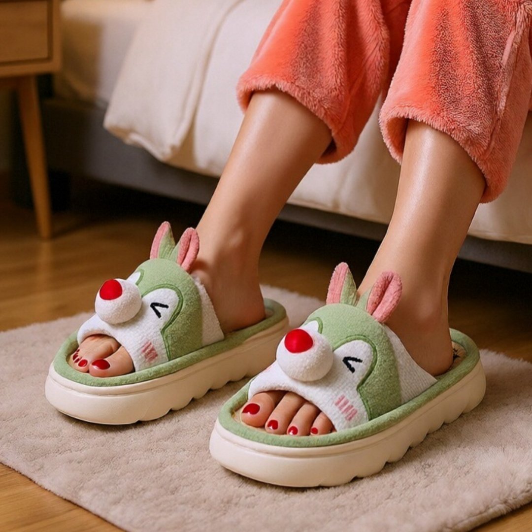 Papuci de casă cu vârf deschis, pufoși și relaxanți, lucrați din materiale moi și călduroase. Sunt alegerea perfectă pentru confort și încălzire.