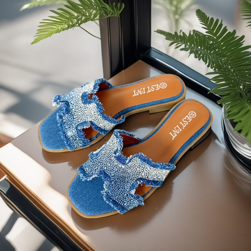 Papuci din material textil, ideali pentru a imbunatati orice tinuta, fie ea casual sau eleganta, ceea ce-i face o alegere versatila pentru diverse ocazii.
