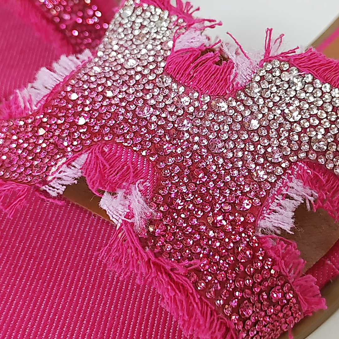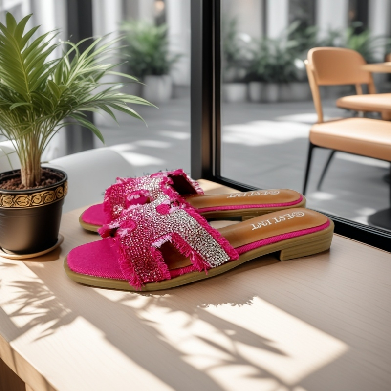 Papuci din material textil, ideali pentru a imbunatati orice tinuta, fie ea casual sau eleganta, ceea ce-i face o alegere versatila pentru diverse ocazii.