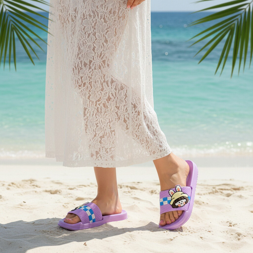 Detalii: • Acești papuci veseli cu model drăguț, vor aduce mai multă culoare în viața ta; • Design unic: adaugă o notă de umor şi personalitate stilului tău; • Utilizare versatilă: se potrivesc atât în exterior cât și în interior (dormitor, baie, piscină, plajă, spa-uri, ș.a.); • Proiectaţi pentru respirabilitate; • Au o bună aderență pentru a te împiedica să aluneci pe suprafețele umede; • Materialul este moale și extrem de confortabil; •Compoziție: 70% EVA, 30% PVC; •Înălțime talpă: 2 cm; • Ghid mărimi: