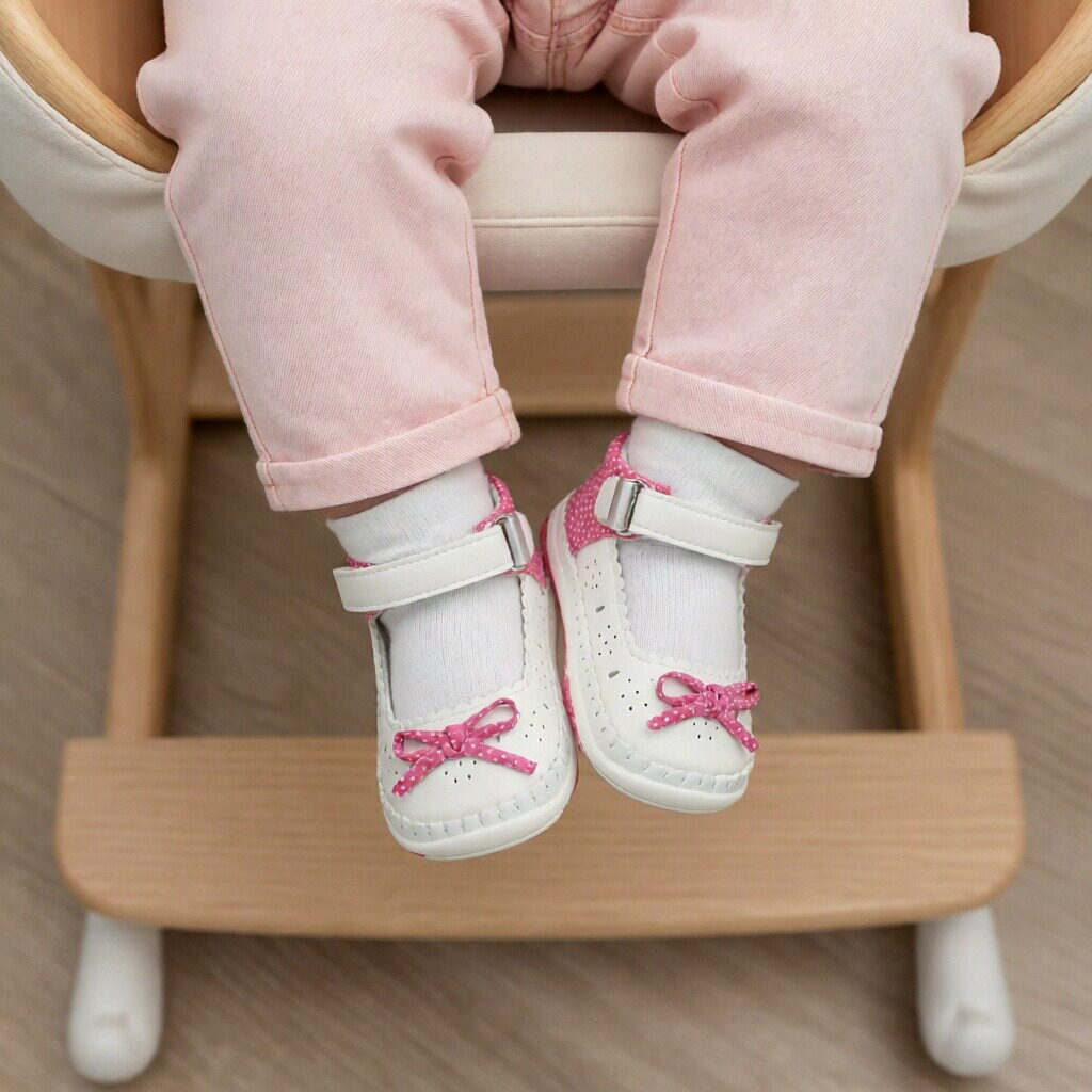 Acest model de pantofi pentru bebeluși este ideal pentru zilele de vară. Modelul perforat permite piciorului bebelușului să respire și să fie răcoros;