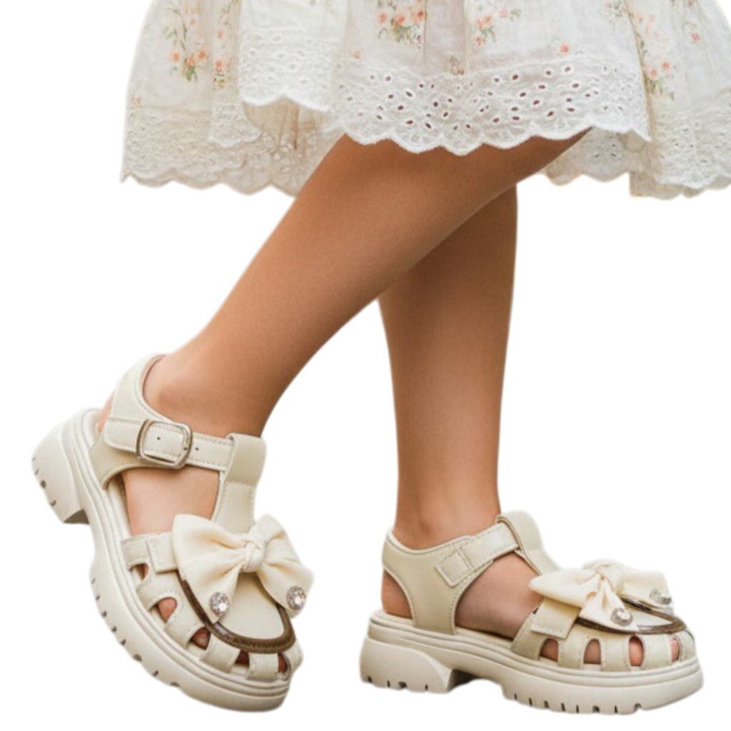 Reînnoiește garderoba fetițelor tale cu aceste sandale din piele ecologică. Aplicațiile decorative și detaliile sclipitoare adaugă o notă de rafinament și originalitate stilului fetiței și va ieși ușor în evidență din mulțime. Sunt o alegere minunată și se pot asorta ușor cu diferite ținute: rochițe, fuste sau blugi scurți.