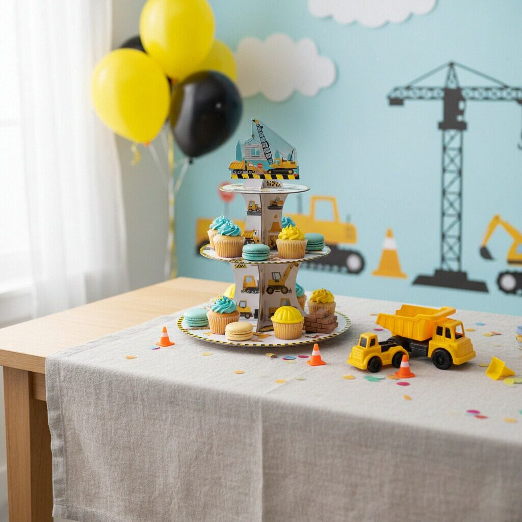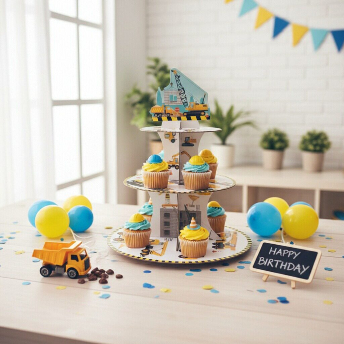 Etajera din carton cu 3 nivele pentru prajituri ' Constructii ' 2260-5